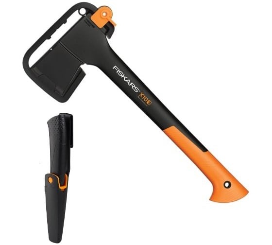 Топор используется при проведении плотницких и столярных работ, а также для выполнения мелких задач на садовом участке. Для предотвращения выскальзывания инструмента из рук в процессе работы предусмотрена крючкообразная форма рукоятки. Лезвие надежно зафиксировано в топорище, благодаря чему оно не сорвется в процессе работы. В комплект входит защитный пластиковый чехол, он обеспечивает безопасное хранение и транспортировку инструмента.