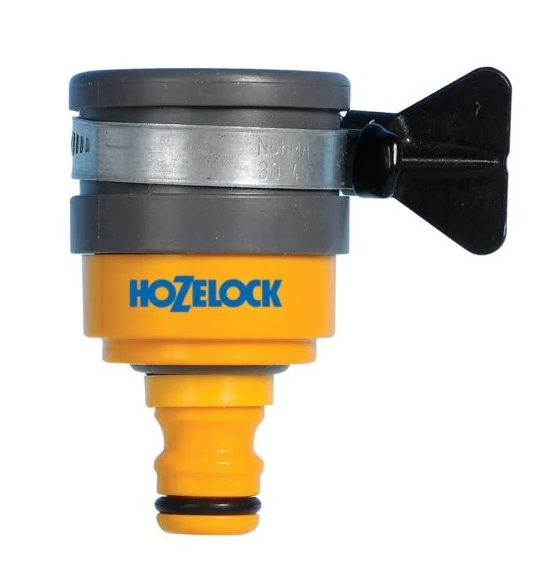 Коннектор фиксируется на кране при помощи хомута из нержавеющей стали. который плотно затягивает резиновую часть коннектора вокруг крана, обеспечивая соединение без протечек.