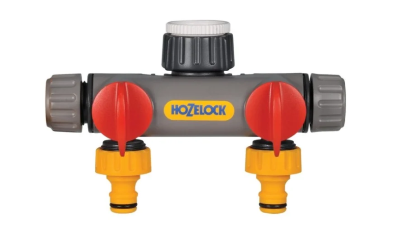Двух путевой разделитель потоков для крана позволяет подключить два поливочных аксессуара или два шланга к одному крану. Каждый из выходов оборудован отдельным клапаном управления расхода воды с возможностью использовать оба выхода одновременно или один из выходов.